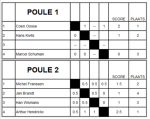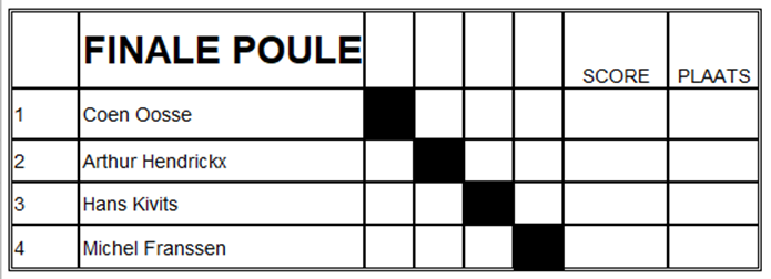 De nummers 1 en 2 van elke poule gaan door naar de finale.